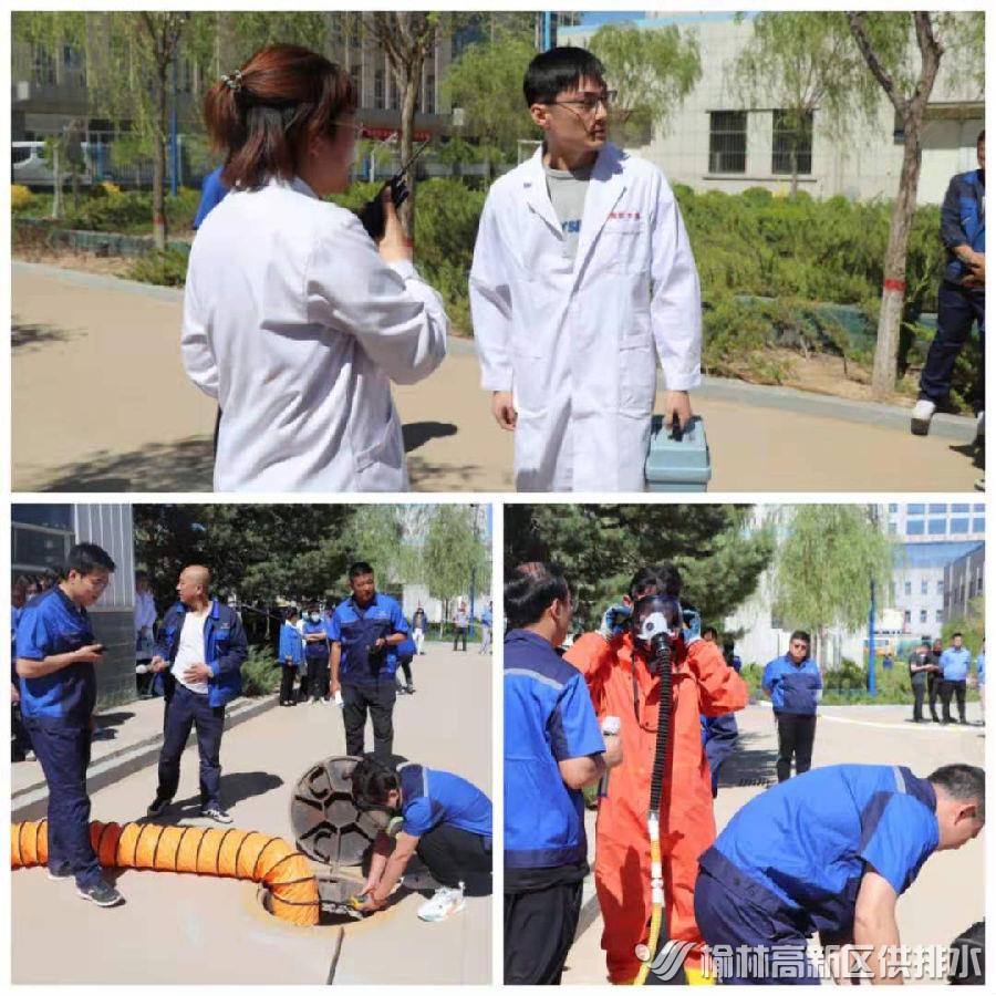 宣誓儀式結(jié)束后,組織開展了有限空間應(yīng)急演練活動(dòng)。演練模擬凈水廠兩名值班人員,檢查次氯酸鈉投加管路被困檢修井。接到員工被困檢修井電話后,公司應(yīng)急領(lǐng)導(dǎo)小組立即啟動(dòng)《榆林高新區(qū)水務(wù)公司有限空間事故應(yīng)急預(yù)案》各救援組迅速抵達(dá)事故現(xiàn)場(chǎng),進(jìn)行現(xiàn)場(chǎng)警戒、人員救護(hù)送醫(yī)、設(shè)備搶修、水質(zhì)檢測(cè)以及事故后現(xiàn)場(chǎng)恢復(fù)等系列工作。